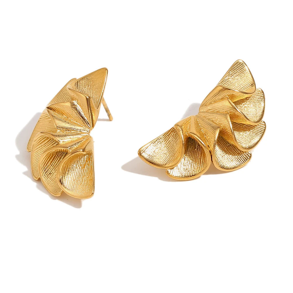 The Elegant Olivia earrings feature a sculptural folded design that reflects light beautifully with every movement. Their modern yet timeless look makes them a versatile accessory for adding polish to any style.