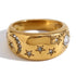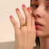 The Fly Emerald Chloe ring sparkles with whimsical elegance, featuring golden bands adorned with emerald-green stones and delicate star accents. Its playful yet sophisticated design makes it perfect for adding a pop of color and charm to your style.