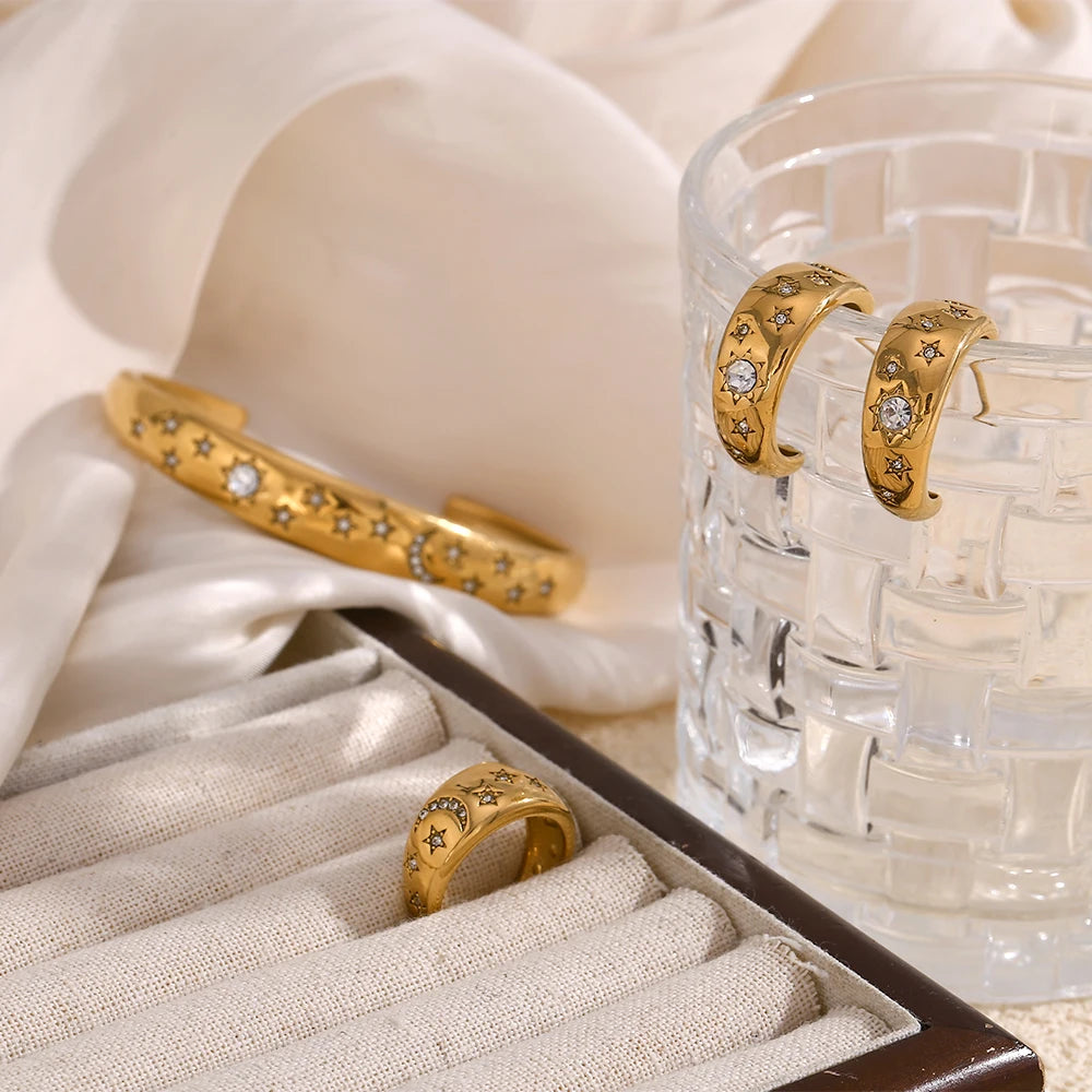 Metal, 18K Gold Plated, Stainless Steel, Cubic Zirconia