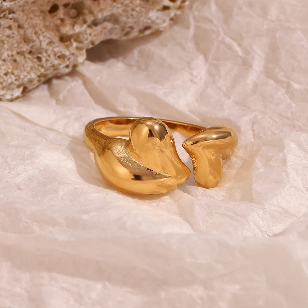 The Heart Opening ring captures the beauty of love in its purest form, with two elegant hearts meeting in a graceful open design. Its smooth curves and polished finish create a romantic yet modern statement that suits any occasion. Crafted for comfort, it’s a timeless piece that adds warmth and elegance to your everyday style.