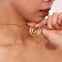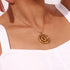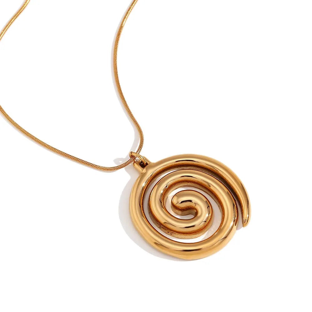 The Sapphire Emma necklace features a bold golden spiral pendant, symbolizing creativity and endless elegance. Perfect for making a distinctive style statement.