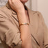 The Velvet Aurora bracelet combines delicate charm with timeless elegance, featuring a sleek golden band adorned with a sparkling floral centerpiece. Perfect for adding a feminine touch to any look.